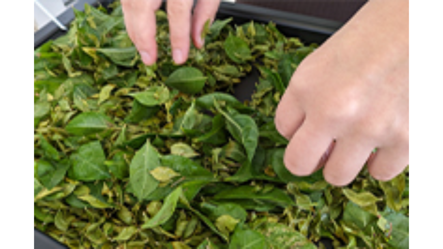 食堂からすぐ近くに自社ヘナ農場で採れたての生葉を焙煎をします。